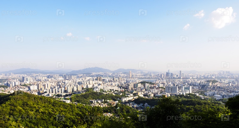 Панорамный вид на Сеул с горы Асан, Южная Корея