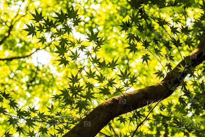 Красивые листья клена светятся в лучах солнца летом