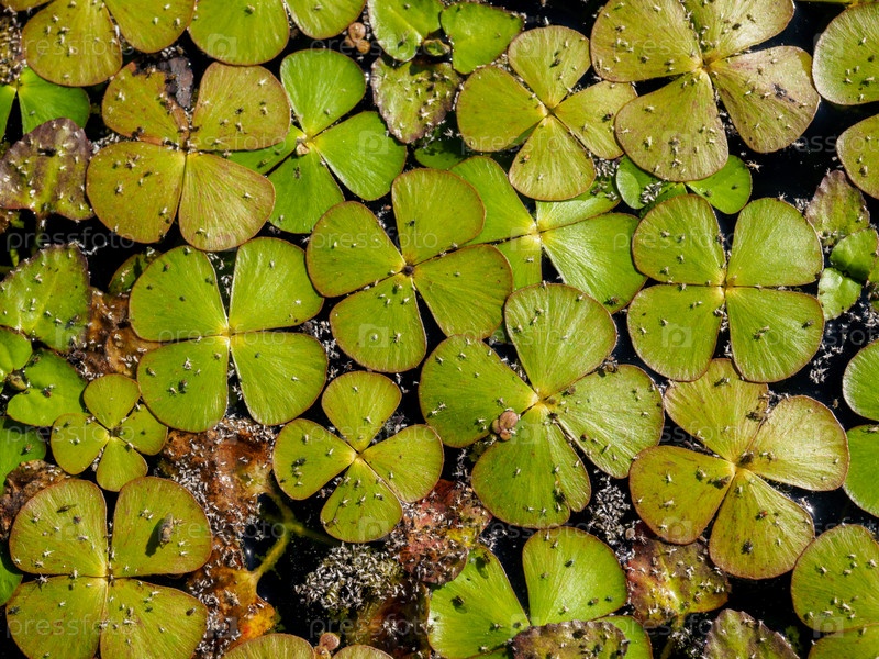 Мухи сидят на личинке (Lemnoideae) в пруду в солнечный день