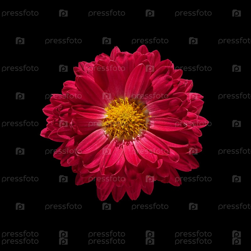 Изолированный красный цветок хризантемы с обтравочным контуром на черном фоне. Красивый цветок Крупный план изолирован без теней. Для дизайна. Природа
