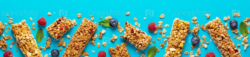 Зерновые батончики на ярком пастельном фоне
