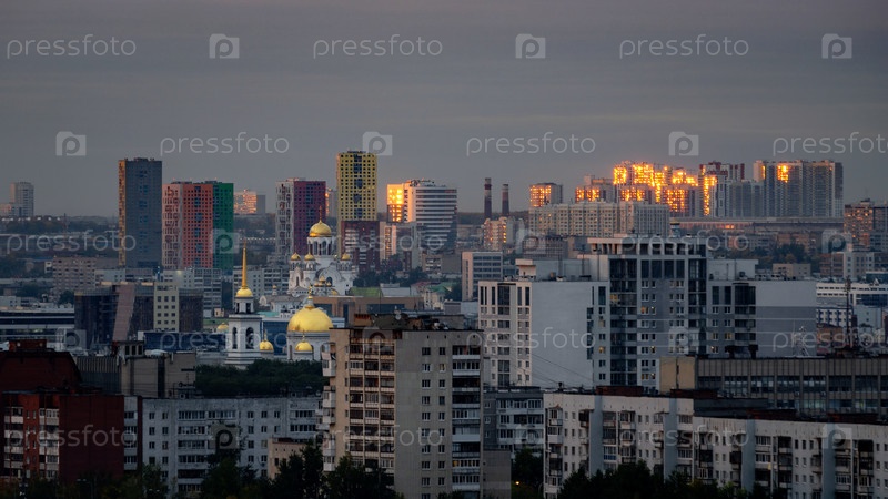 Рассветные облака над мегаполисом раннего заката в Екатеринбурге
