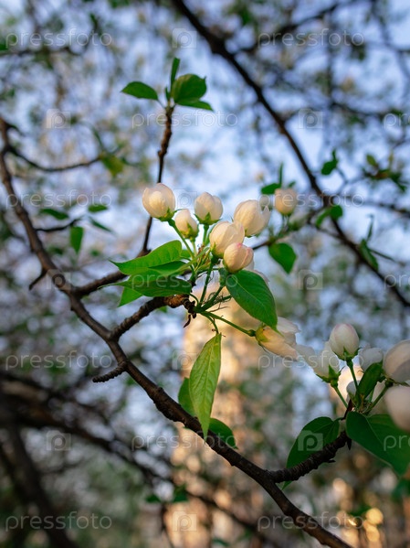 Цветы яблони на фоне дерева
