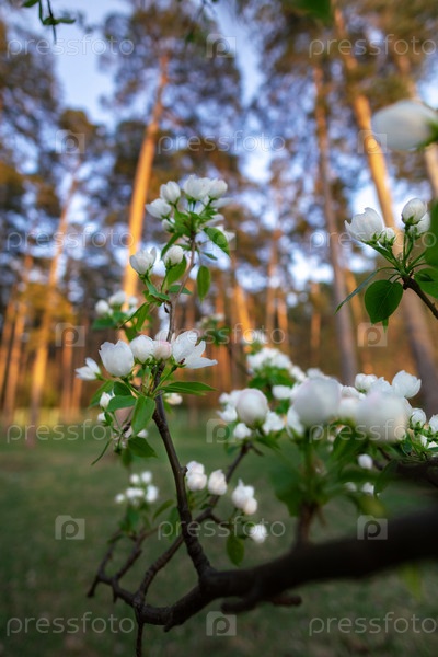 Цветы яблони на фоне дерева