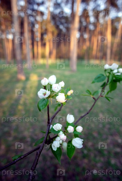 Цветы яблони на фоне дерева