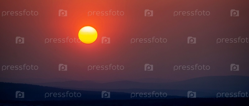 Закат над холмами в ясную погоду