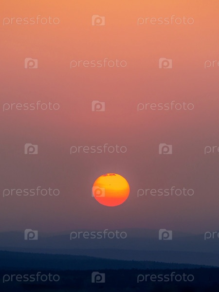 Закат над холмами в ясную погоду