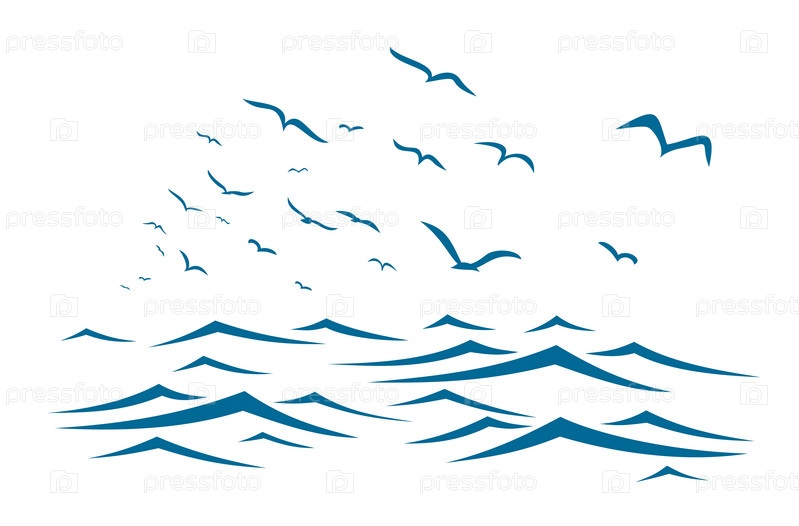 Голубое море со стаей птиц