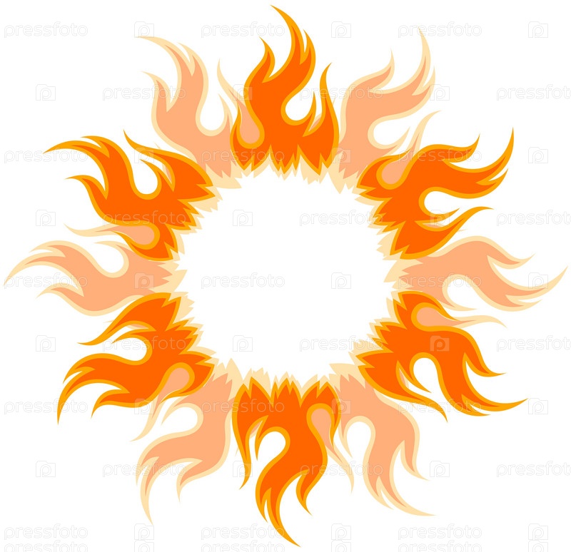 Круглая рамка с ярким огненным солнцем