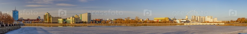 Вид на городскую застройку с реки. Городской ландшафт