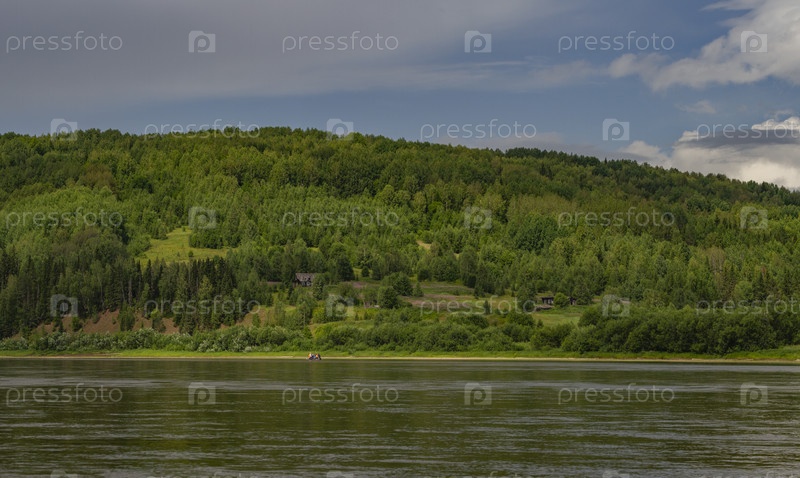 Панорамный вид на реку в летний день. река Вишера. Пермский край. Россия
