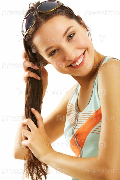 Девушка поправляет волосы