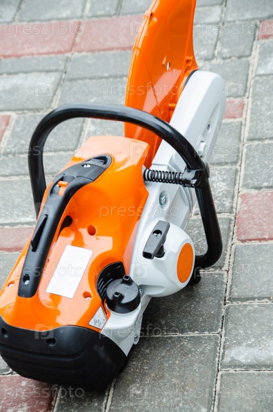 Бетонорез на строительной площадке в рабочем состоянии