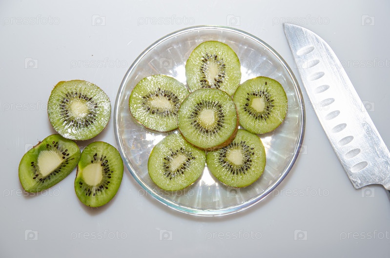Киви, нарезанный на кусочки, кухонный нож