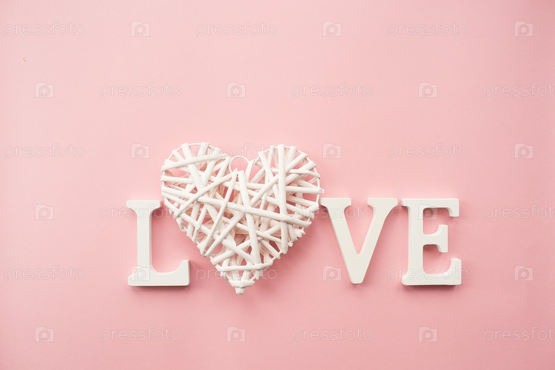 Слово любовь белыми буквами на модном розовом фоне. С Днем святого Валентина, Днем матери, 8 марта, Всемирным женским днем. Плоская укладка