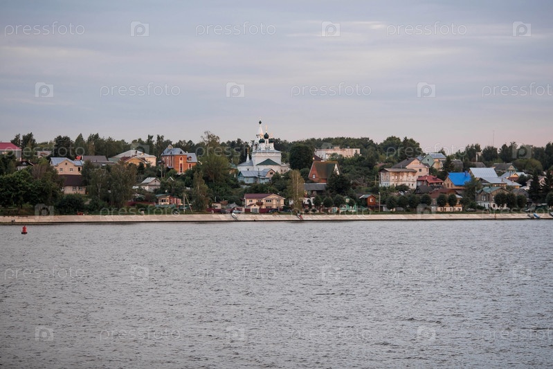 Россия. Кострома. Вид на историческую Заволжскую часть города Костромы с Волги летним вечером