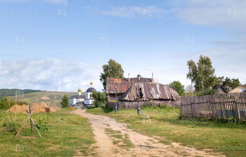Старые дома в маленьком островном поселке Свияжск. Казань, Татарстан, Россия