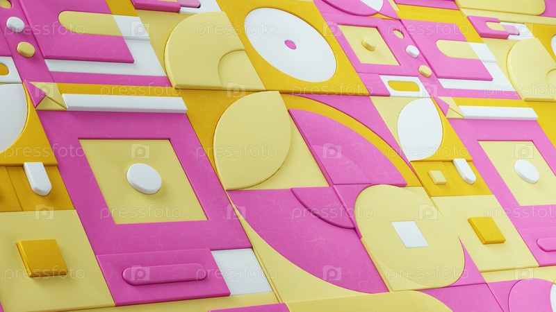 Орнамент из простых фигур в стиле Баухаус. Розовый, желтый и белый цвета