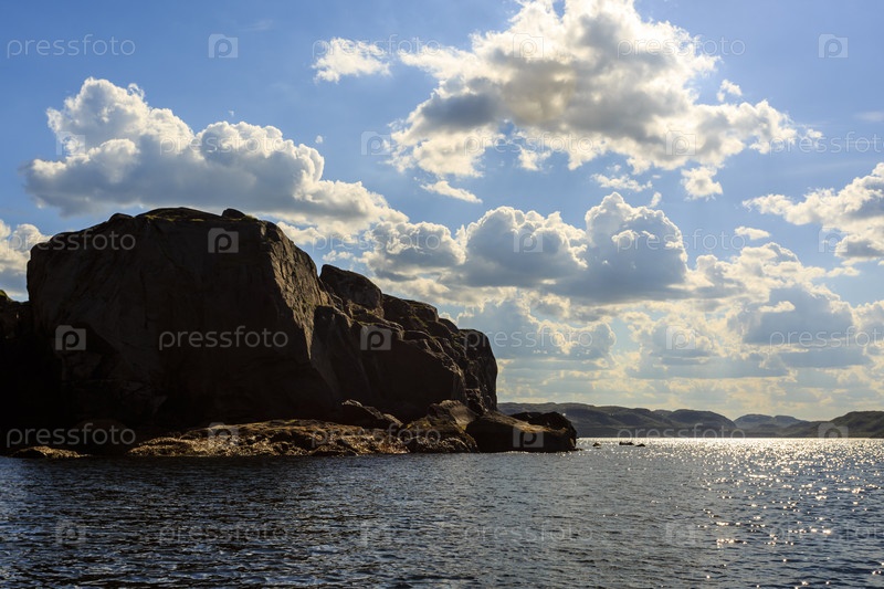 Береговая линия Баренцева моря северным полярным летом. Северный Ледовитый океан, Кольский полуостров, Россия