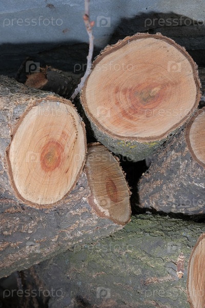 Распиленный ствол плодового дерева на чурки