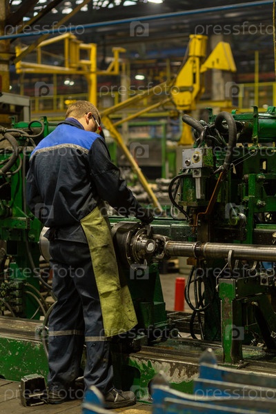 Рабочий на рабочем месте работника завода по производству карданных валов