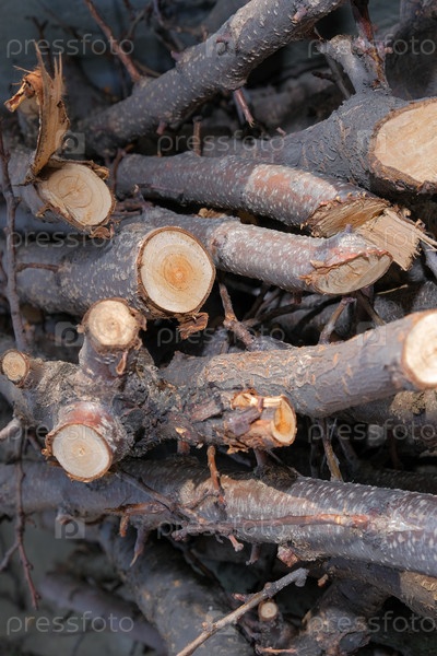 Крупные спиленные ветки плодового дерева