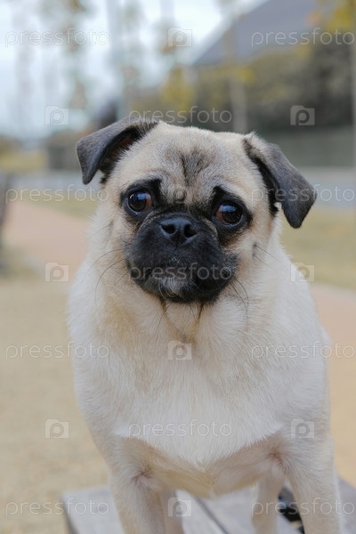 Поясной портрет собаки породы мопс