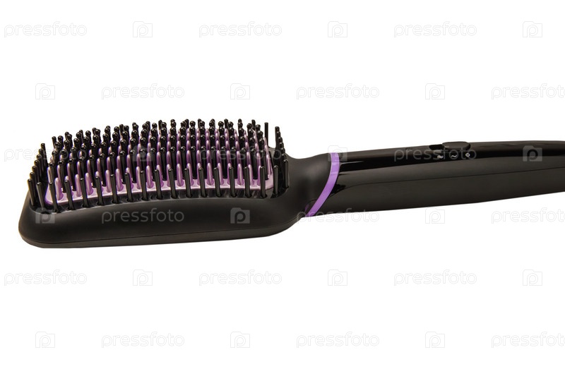 Электрическая термощетка для выпрямления волос на белом фоне