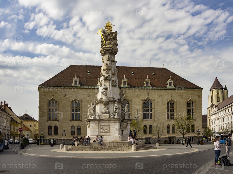 Будапешт, Венгрия Площадь Святой Троицы, названная в честь Троицкой колонны, построенной между 1710-1713 годами после большой чумы. Барочный дизайн Филиппа Унглиха и Дом венгерских вин