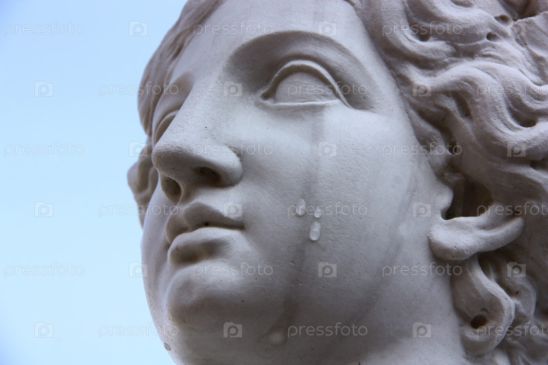Лицо красивой женщины из белого мрамора со слезами на щеке