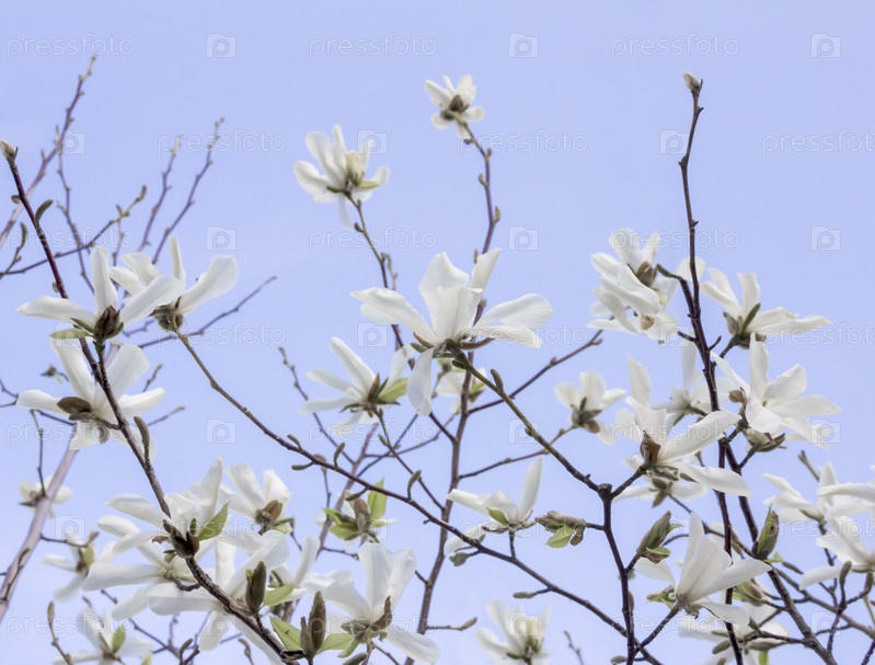 Розовые или белые цветы цветящего дерева магнолии (Magnolia denudata) весной