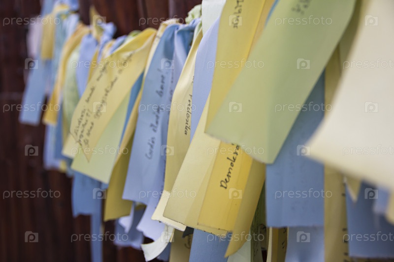 Местная достопримечательность: Ленты пожелания Флавия Деве Марии и юному Флавию, будущему римскому императору, легенда о его выздоровлении в музее римских поселений региона, Хевиз, деревня Эгредь, Венгрия, 08 апреля 2018 г