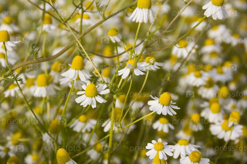 Растительные клумбы Matricaria chamomilla можно использовать в фитотерапии на Поле ярких цветов ромашка, ромашка