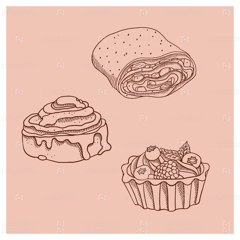 Булочка с корицей, торт и яблочный штрудель, стиль ручной работы. Свежая домашняя выпечка