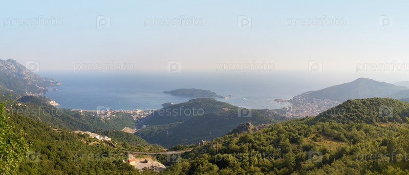 Вид сверху на побережье Будванской ривьеры. Черногория