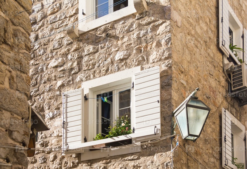 Каменный дом с деревянными ставнями в старом городе. Будва, Черногория