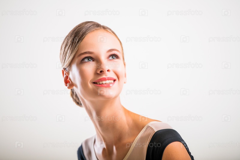 Портрет красивой молодой девушки с чистой кожей на красивом лице - белый фон