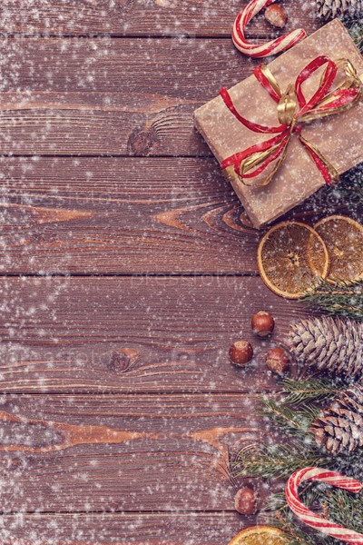 Рождественские подарочные коробки и елка на деревянном фоне