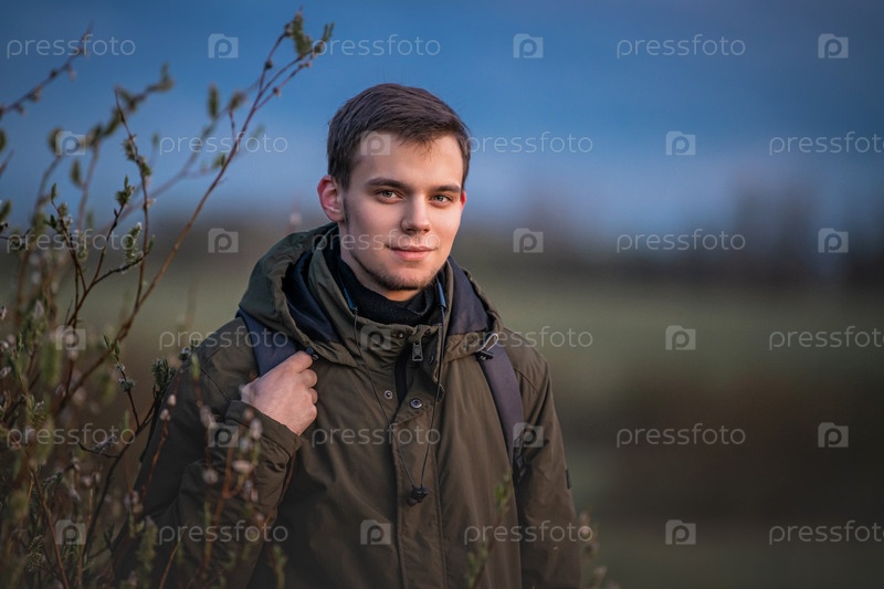 Боковой портрет молодого афроамериканца-путешественника с открытыми руками на открытом воздухе