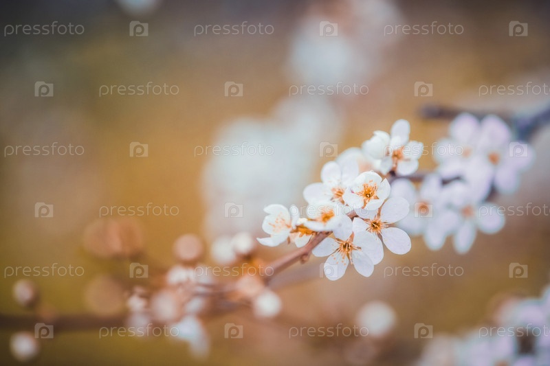 Селективный фокус красивых ветвей розовых вишневых цветов на дереве под голубым небом, Красивые цветы сакуры в весенний сезон в парке, Текстура флоры, Природный цветочный фон