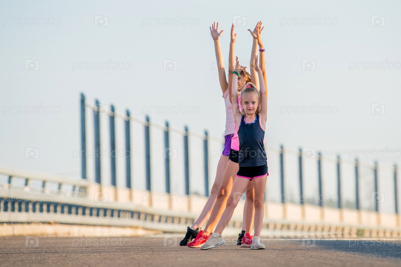 Девушки тренируются летом на улице, готовьтесь к трюку
