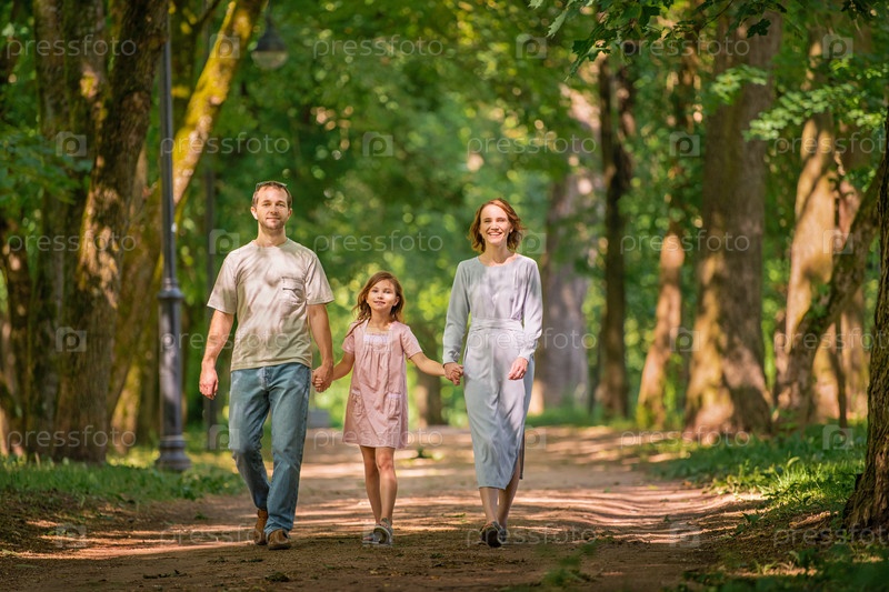 Портрет счастливой традиционной семьи на прогулке в летнем парке