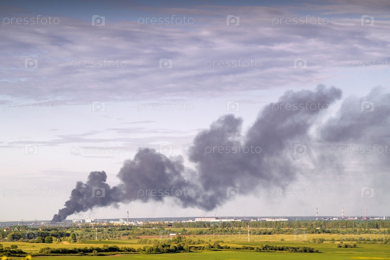 Изображения дыма на фоне неба от пожара в городе на горизонте