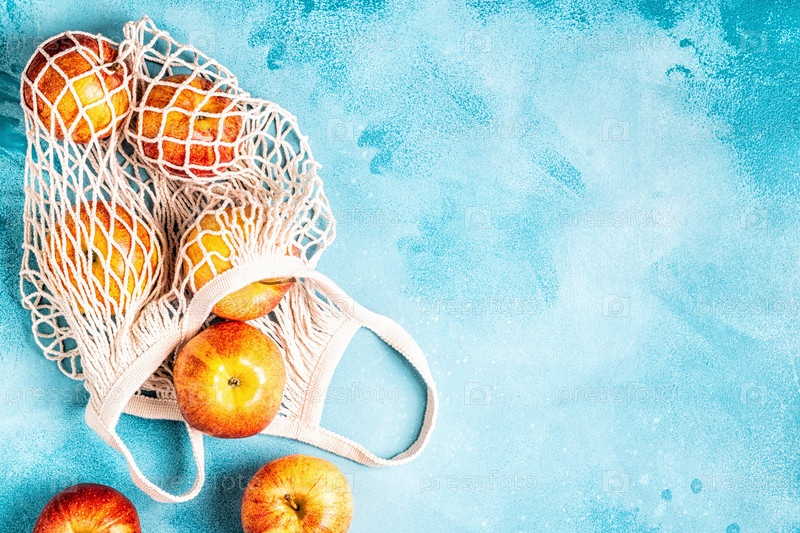 Свежие яблоки в сетчатом мешке