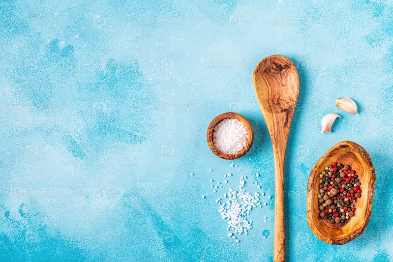 Специи и травы с деревянной ложкой