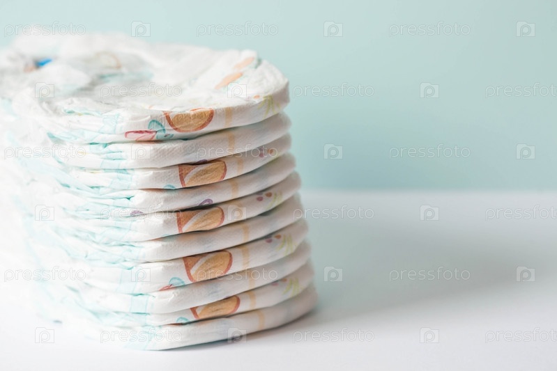 Стопка подгузников на пеленальном столике. Место для текста