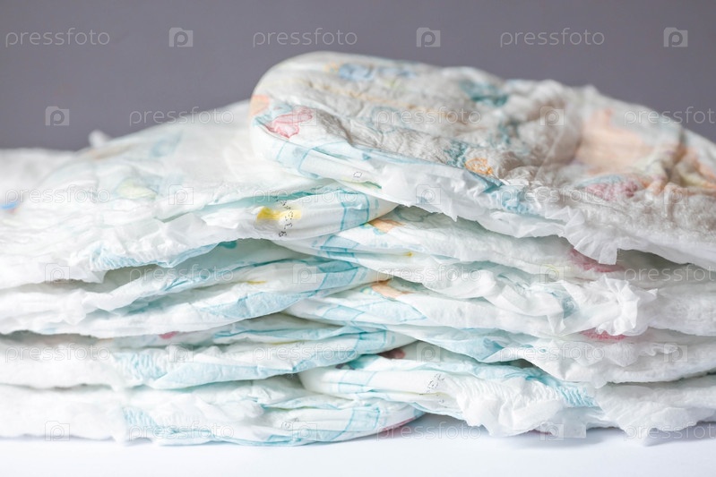 Стопка подгузников на пеленальном столике. Место для текста