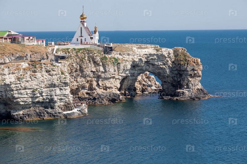Мыс Большой Атлеш Тарханкутского полуострова. Церковь-часовня Святого Николая на краю мыса. Россия, Республика Крым