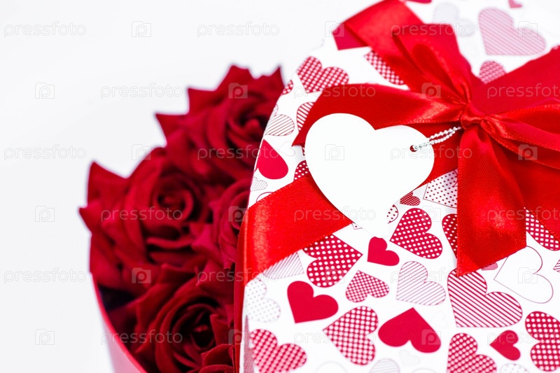 День святого Валентина. Красные розы в белой коробке в виде сердца на белом фоне. Подарок женщинам на праздник. Концепция доставки цветов. флористика и цветочные магазины. Скопируйте пространство