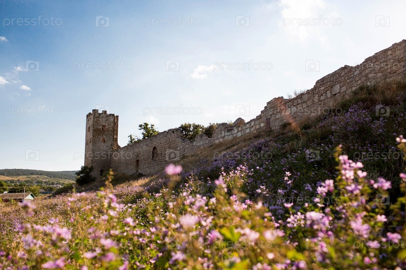Вид на башню Климента с крепостной стены. Генуэзская крепость, город Феодосия, Крым